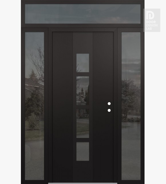 Modern Steel Front Door DIAMOND A10 60" X 96" BLACK/BLACK MIRRORED GLASS PANEL BLACK RHI WITH 2 SIDELITES AND TRANSOM MIRRORED GLASS