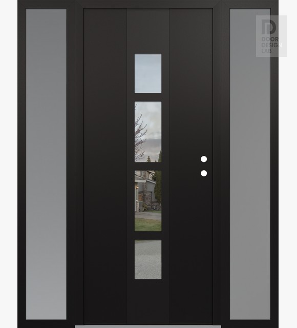 Modern Steel Front Door DIAMOND A10 64" X 80" BLACK/BLACK CLEAR GLASS PANEL BLACK RHI WITH 2 SIDELITES FROSTED GLASS