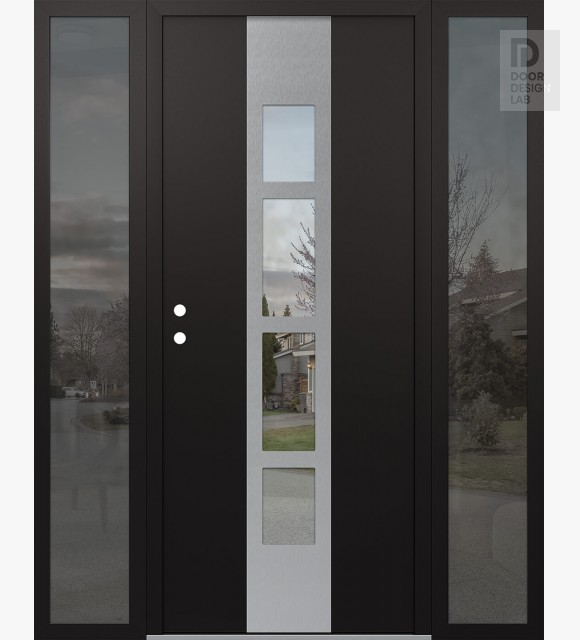 Modern Steel Front Door DIAMOND A10 64" X 80" BLACK/BLACK CLEAR GLASS PANEL STAINLESS STEEL LHI WITH 2 SIDELITES MIRRORED GLASS