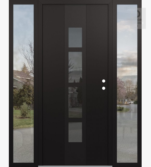 Modern Steel Front Door DIAMOND A10 64" X 80" BLACK/BLACK MIRRORED GLASS PANEL BLACK RHI WITH 2 SIDELITES CLEAR GLASS
