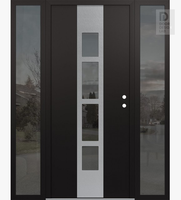 Modern Steel Front Door DIAMOND A10 64" X 80" BLACK/BLACK MIRRORED GLASS PANEL STAINLESS STEEL RHI WITH 2 SIDELITES MIRRORED GLASS