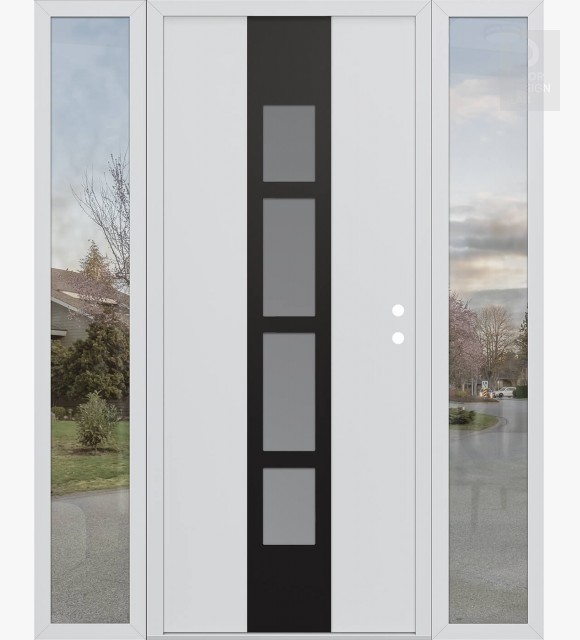 Modern Steel Front Door DIAMOND A10 64" X 80" BLACK/WHITE FROSTED GLASS PANEL BLACK RHI WITH 2 SIDELITES CLEAR GLASS