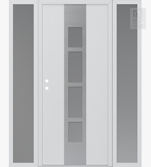 Modern Steel Front Door DIAMOND A10 64" X 80" BLACK/WHITE FROSTED GLASS PANEL STAINLESS STEEL LHI WITH 2 SIDELITES FROSTED GLASS