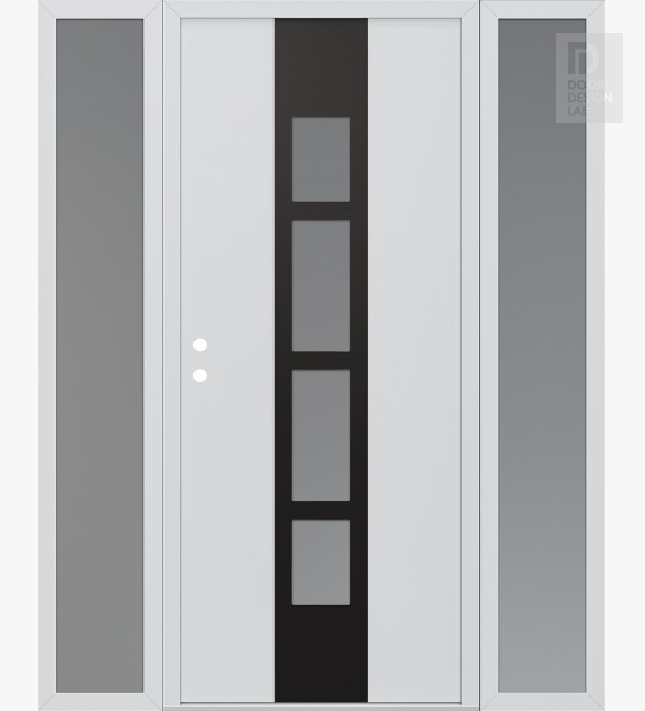Modern Steel Front Door DIAMOND A10 68" X 80" BLACK/WHITE FROSTED GLASS PANEL BLACK LHI WITH 2 SIDELITES FROSTED GLASS