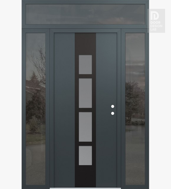 Modern Steel Front Door DIAMOND A10 68" X 96" ANTHRACITE/ANTHRACITE FROSTED GLASS PANEL BLACK RHI WITH 2 SIDELITES AND TRANSOM MIRRORED GLASS
