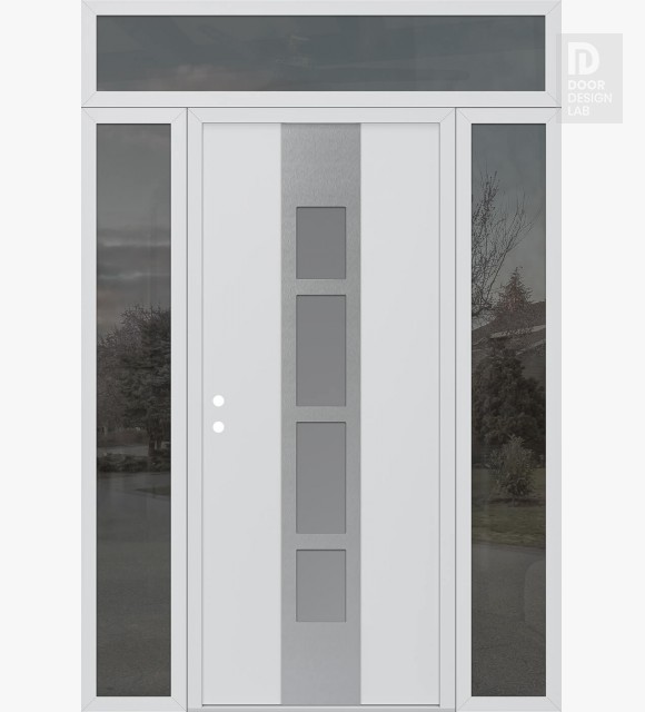 Modern Steel Front Door DIAMOND A10 68" X 96" BLACK/WHITE FROSTED GLASS PANEL STAINLESS STEEL LHI WITH 2 SIDELITES AND TRANSOM MIRRORED GLASS