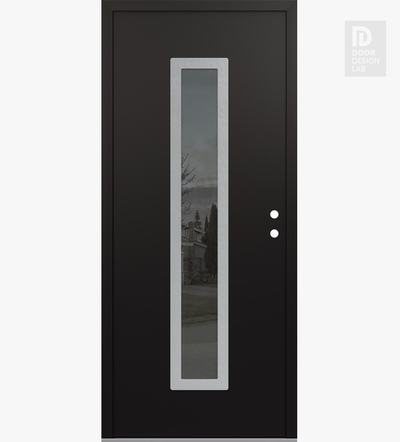 Modern Steel Front Door DIAMOND A11 36" X 80" BLACK/BLACK MIRRORED GLASS PANEL STAINLESS STEEL RHI