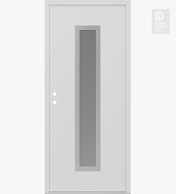 Modern Steel Front Door DIAMOND A11 36" X 80" BLACK/WHITE FROSTED GLASS PANEL STAINLESS STEEL LHI