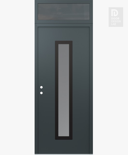 Modern Steel Front Door DIAMOND A11 36" X 96" ANTHRACITE/ANTHRACITE FROSTED GLASS PANEL BLACK LHI WITH TRANSOM MIRRORED GLASS