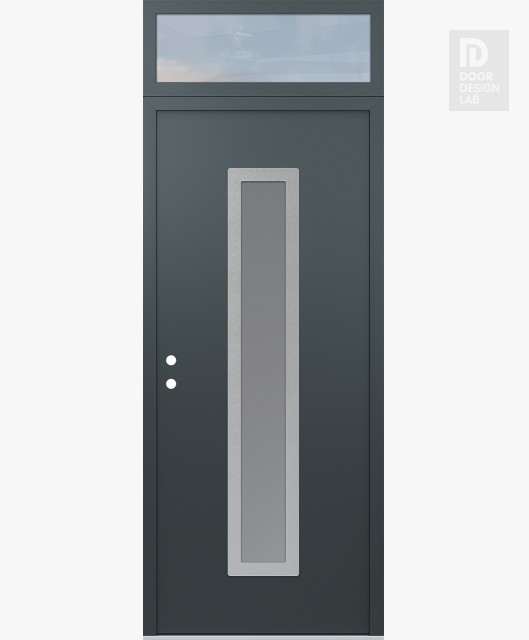 Modern Steel Front Door DIAMOND A11 36" X 96" ANTHRACITE/ANTHRACITE FROSTED GLASS PANEL STAINLESS STEEL LHI WITH TRANSOM CLEAR GLASS