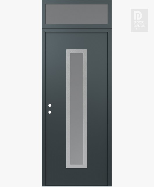 Modern Steel Front Door DIAMOND A11 36" X 96" ANTHRACITE/ANTHRACITE FROSTED GLASS PANEL STAINLESS STEEL LHI WITH TRANSOM FROSTED GLASS