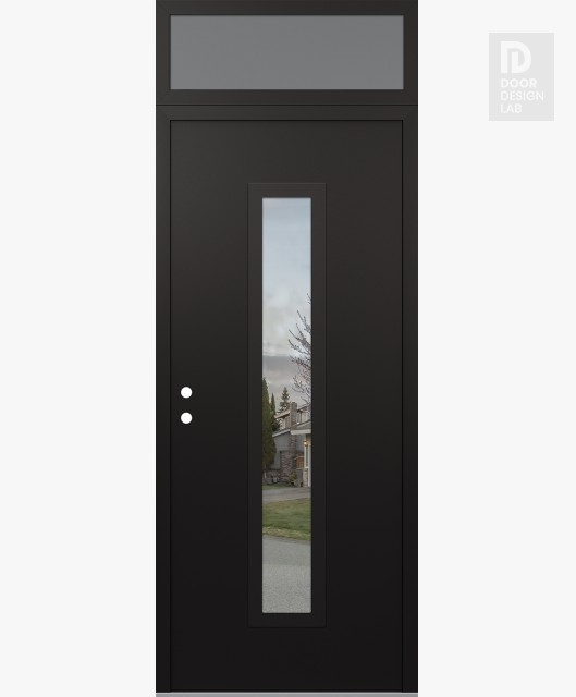 Modern Steel Front Door DIAMOND A11 36" X 96" BLACK/BLACK CLEAR GLASS PANEL BLACK LHI WITH TRANSOM FROSTED GLASS