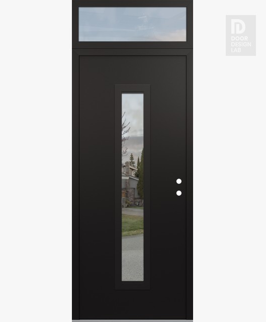 Modern Steel Front Door DIAMOND A11 36" X 96" BLACK/BLACK CLEAR GLASS PANEL BLACK RHI WITH TRANSOM CLEAR GLASS