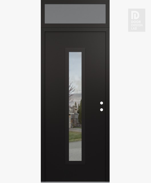 Modern Steel Front Door DIAMOND A11 36" X 96" BLACK/BLACK CLEAR GLASS PANEL BLACK RHI WITH TRANSOM FROSTED GLASS
