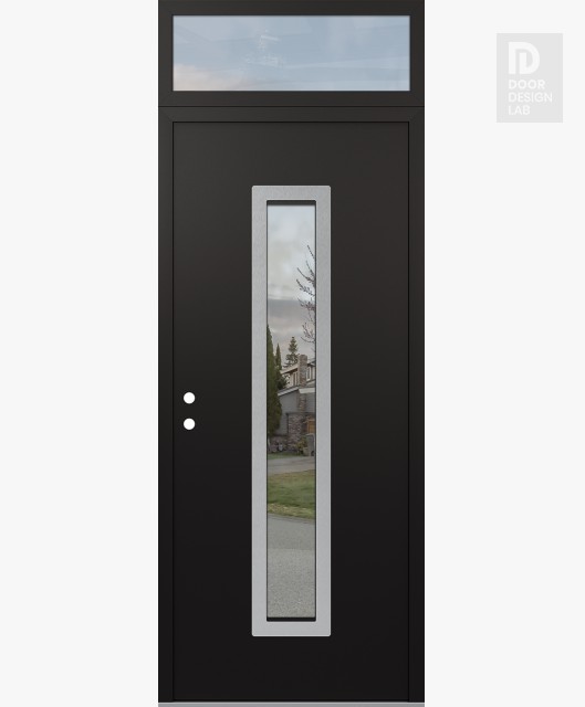 Modern Steel Front Door DIAMOND A11 36" X 96" BLACK/BLACK CLEAR GLASS PANEL STAINLESS STEEL LHI WITH TRANSOM CLEAR GLASS