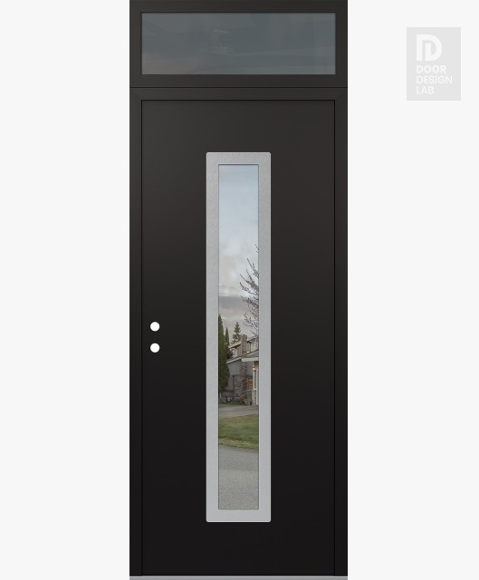 Modern Steel Front Door DIAMOND A11 36" X 96" BLACK/BLACK CLEAR GLASS PANEL STAINLESS STEEL LHI WITH TRANSOM MIRRORED GLASS