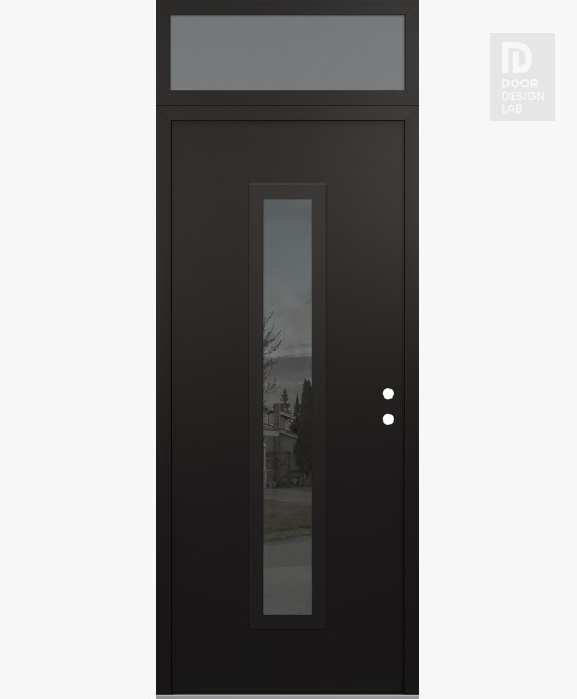 Modern Steel Front Door DIAMOND A11 36" X 96" BLACK/BLACK MIRRORED GLASS PANEL BLACK RHI WITH TRANSOM FROSTED GLASS