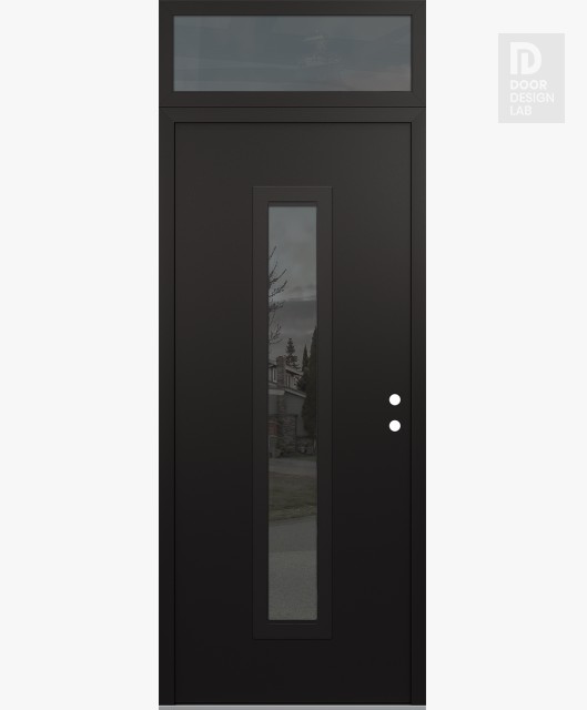 Modern Steel Front Door DIAMOND A11 36" X 96" BLACK/BLACK MIRRORED GLASS PANEL BLACK RHI WITH TRANSOM MIRRORED GLASS