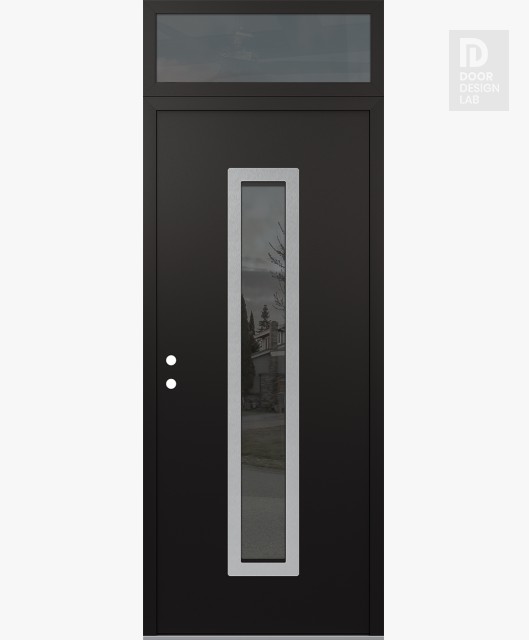 Modern Steel Front Door DIAMOND A11 36" X 96" BLACK/BLACK MIRRORED GLASS PANEL STAINLESS STEEL LHI WITH TRANSOM MIRRORED GLASS