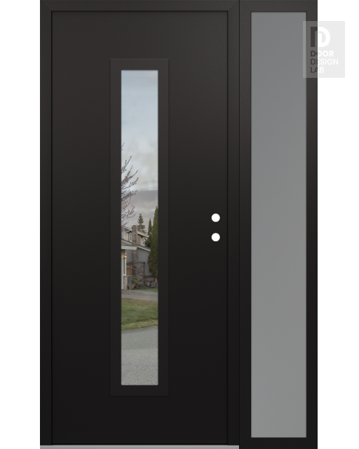 Modern Steel Front Door DIAMOND A11 48" X 80" BLACK/BLACK CLEAR GLASS PANEL BLACK RHI WITH SIDELITE FROSTED GLASS