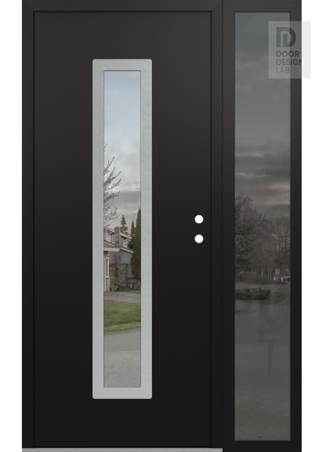 Modern Steel Front Door DIAMOND A11 48" X 80" BLACK/BLACK CLEAR GLASS PANEL STAINLESS STEEL RHI WITH SIDELITE MIRRORED GLASS