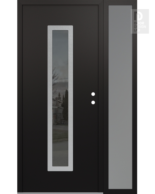 Modern Steel Front Door DIAMOND A11 48" X 80" BLACK/BLACK MIRRORED GLASS PANEL STAINLESS STEEL RHI WITH SIDELITE FROSTED GLASS