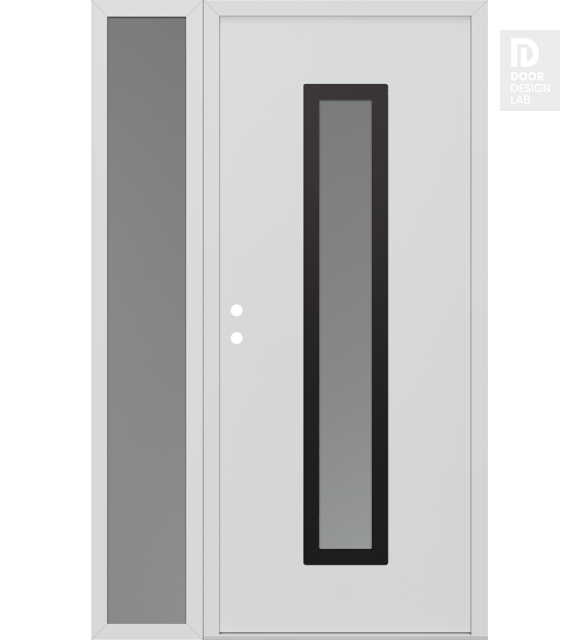 Modern Steel Front Door DIAMOND A11 48" X 80" BLACK/WHITE FROSTED GLASS PANEL BLACK LHI WITH SIDELITE FROSTED GLASS