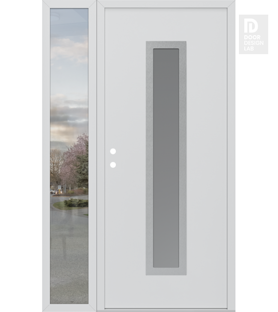 Modern Steel Front Door DIAMOND A11 48" X 80" BLACK/WHITE FROSTED GLASS PANEL STAINLESS STEEL LHI WITH SIDELITE CLEAR GLASS
