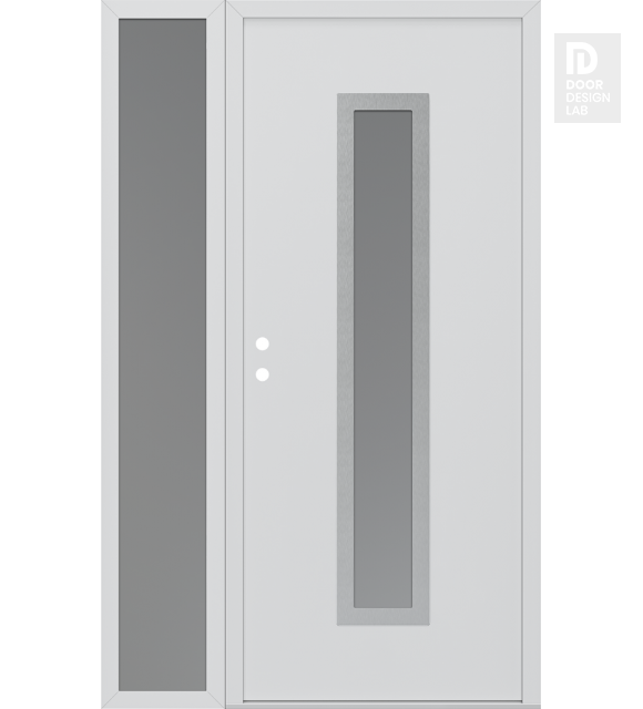 Modern Steel Front Door DIAMOND A11 48" X 80" BLACK/WHITE FROSTED GLASS PANEL STAINLESS STEEL LHI WITH SIDELITE FROSTED GLASS