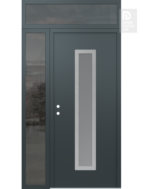 Modern Steel Front Door DIAMOND A11 48" X 96" ANTHRACITE/ANTHRACITE FROSTED GLASS PANEL STAINLESS STEEL LHI WITH SIDELITE AND TRANSOM MIRRORED GLASS