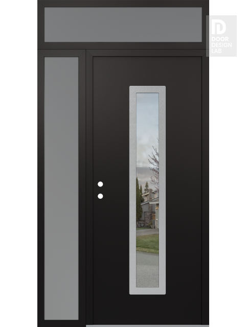Modern Steel Front Door DIAMOND A11 48" X 96" BLACK/BLACK CLEAR GLASS PANEL STAINLESS STEEL LHI WITH SIDELITE AND TRANSOM FROSTED GLASS