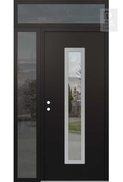 Modern Steel Front Door DIAMOND A11 48" X 96" BLACK/BLACK CLEAR GLASS PANEL STAINLESS STEEL LHI WITH SIDELITE AND TRANSOM MIRRORED GLASS