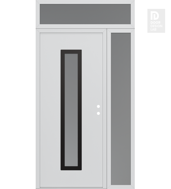 Modern Steel Front Door DIAMOND A11 48" X 96" BLACK/WHITE FROSTED GLASS PANEL BLACK RHI WITH SIDELITE AND TRANSOM FROSTED GLASS