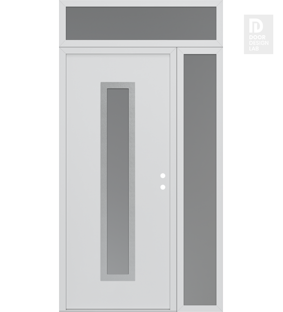 Modern Steel Front Door DIAMOND A11 48" X 96" BLACK/WHITE FROSTED GLASS PANEL STAINLESS STEEL RHI WITH SIDELITE AND TRANSOM FROSTED GLASS