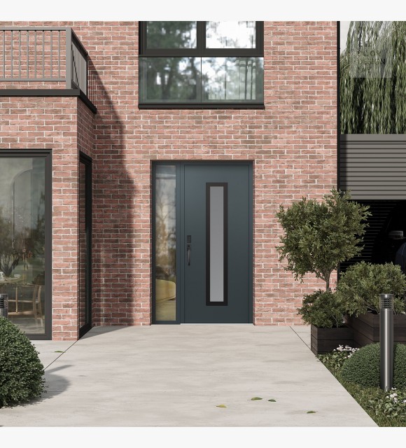 Modern Steel Front Door DIAMOND A11 50" X 80" ANTHRACITE/ANTHRACITE FROSTED GLASS PANEL BLACK RHI WITH SIDELITE CLEAR GLASS