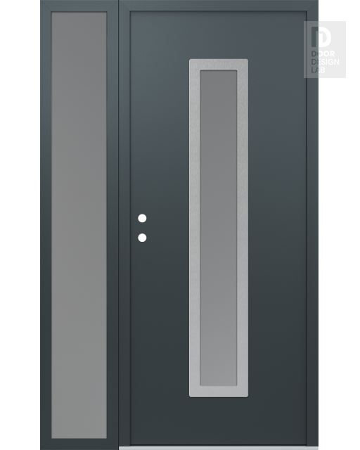 Modern Steel Front Door DIAMOND A11 50" X 80" ANTHRACITE/ANTHRACITE FROSTED GLASS PANEL STAINLESS STEEL LHI WITH SIDELITE FROSTED GLASS