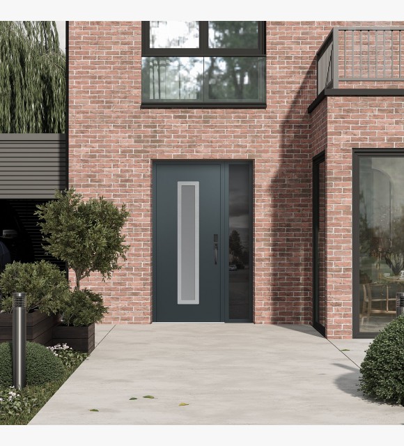 Modern Steel Front Door DIAMOND A11 50" X 80" ANTHRACITE/ANTHRACITE FROSTED GLASS PANEL STAINLESS STEEL LHI WITH SIDELITE MIRRORED GLASS