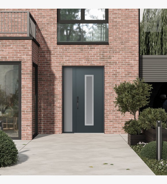 Modern Steel Front Door DIAMOND A11 50" X 80" ANTHRACITE/ANTHRACITE FROSTED GLASS PANEL STAINLESS STEEL RHI WITH SIDELITE FROSTED GLASS