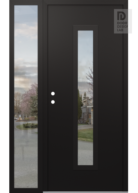 Modern Steel Front Door DIAMOND A11 50" X 80" BLACK/BLACK CLEAR GLASS PANEL BLACK LHI WITH SIDELITE CLEAR GLASS