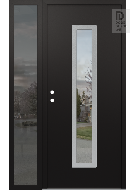 Modern Steel Front Door DIAMOND A11 50" X 80" BLACK/BLACK CLEAR GLASS PANEL STAINLESS STEEL LHI WITH SIDELITE MIRRORED GLASS