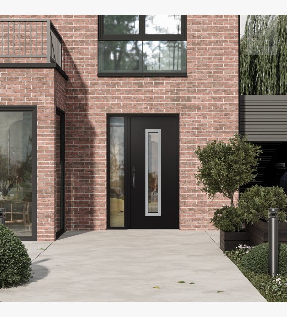 The double-chamber glazing combined with polystyrene insulation reduces heat loss by 40-50% compared to conventional exterior doors: