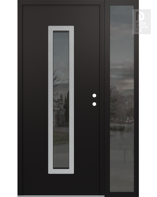 Modern Steel Front Door DIAMOND A11 50" X 80" BLACK/BLACK MIRRORED GLASS PANEL STAINLESS STEEL RHI WITH SIDELITE MIRRORED GLASS