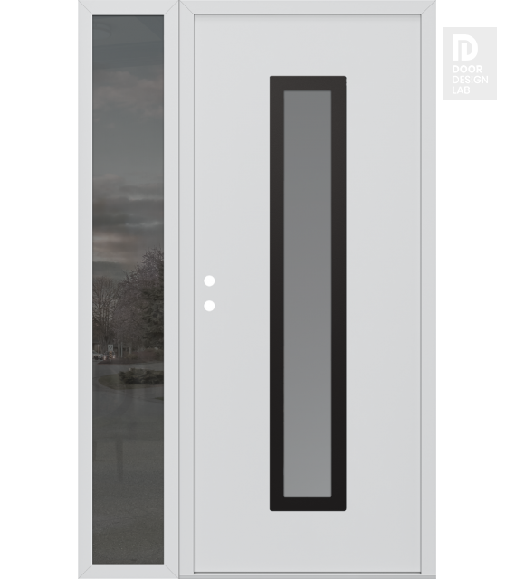 Modern Steel Front Door DIAMOND A11 50" X 80" BLACK/WHITE FROSTED GLASS PANEL BLACK LHI WITH SIDELITE MIRRORED GLASS