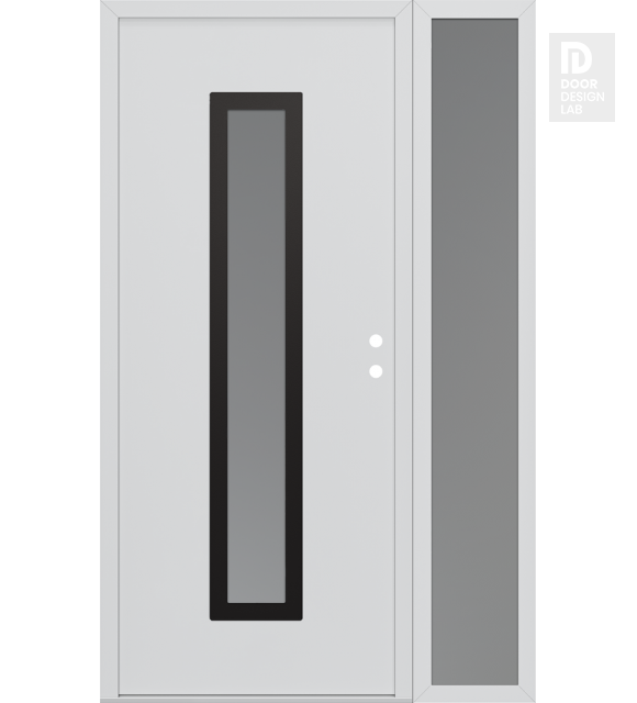 Modern Steel Front Door DIAMOND A11 50" X 80" BLACK/WHITE FROSTED GLASS PANEL BLACK RHI WITH SIDELITE FROSTED GLASS