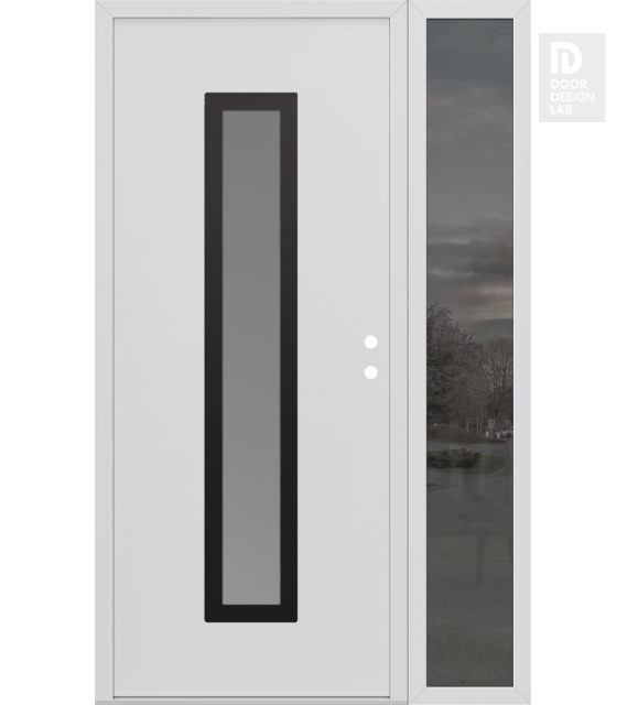 Modern Steel Front Door DIAMOND A11 50" X 80" BLACK/WHITE FROSTED GLASS PANEL BLACK RHI WITH SIDELITE MIRRORED GLASS