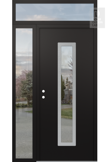 Modern Steel Front Door DIAMOND A11 50" X 96" BLACK/BLACK CLEAR GLASS PANEL STAINLESS STEEL LHI WITH SIDELITE AND TRANSOM CLEAR GLASS