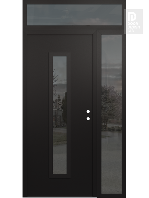 Modern Steel Front Door DIAMOND A11 50" X 96" BLACK/BLACK MIRRORED GLASS PANEL BLACK RHI WITH SIDELITE AND TRANSOM MIRRORED GLASS