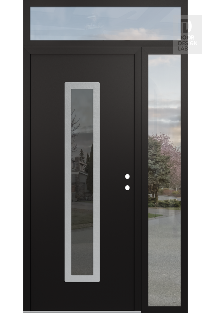 Modern Steel Front Door DIAMOND A11 50" X 96" BLACK/BLACK MIRRORED GLASS PANEL STAINLESS STEEL RHI WITH SIDELITE AND TRANSOM CLEAR GLASS