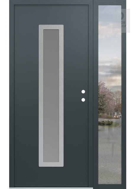 Modern Steel Front Door DIAMOND A11 52" X 80" ANTHRACITE/ANTHRACITE FROSTED GLASS PANEL STAINLESS STEEL RHI WITH SIDELITE CLEAR GLASS