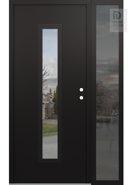 Modern Steel Front Door DIAMOND A11 52" X 80" BLACK/BLACK CLEAR GLASS PANEL BLACK RHI WITH SIDELITE MIRRORED GLASS